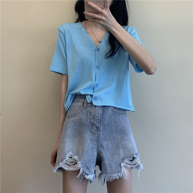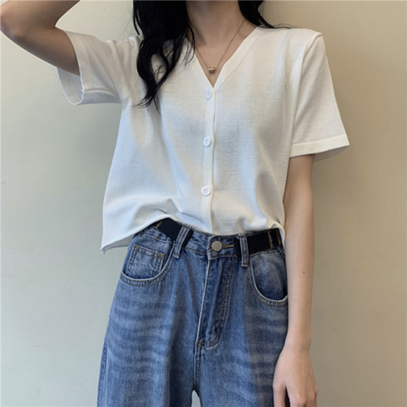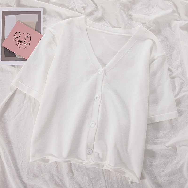 半小時前氣質v領薄款打底針織衫,2020夏季新款女裝短款開衫上衣 - 【買一送三】任選4件,僅需NT$1198
