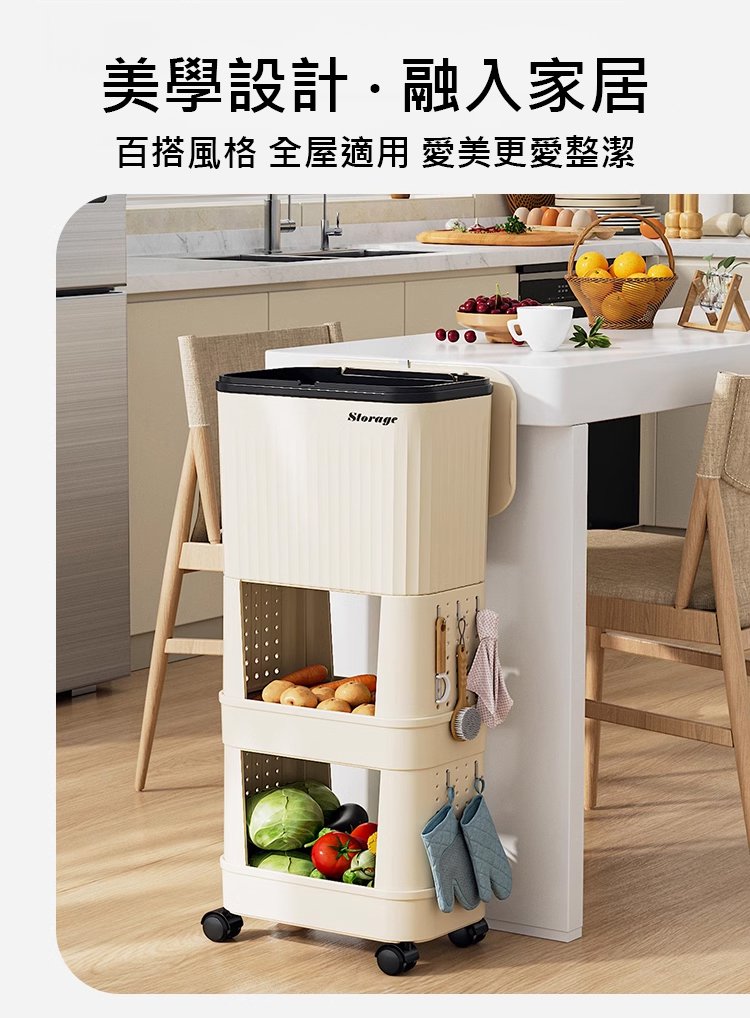 11分鐘前【不彎腰】家用可移動多功能置物垃圾桶 - 【超殺*贈20垃圾袋】1入組$279